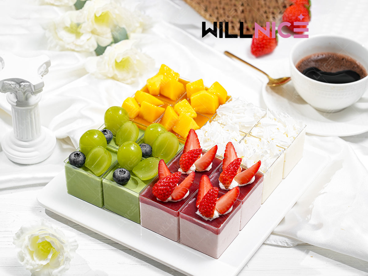 芒果慕斯果香四溢且口感醇厚,草莓慕斯清新誘人,榴槤慕斯濃郁醇香,抹茶慕斯清新韻味。多種口感在舌尖交織跳躍,開啟假日裡的奇妙幻想之旅。