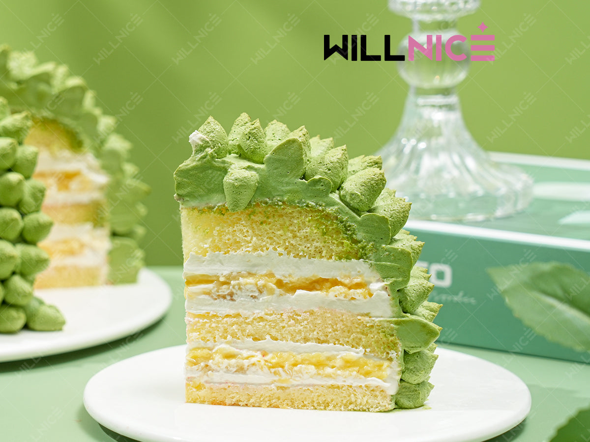 夹心:抹茶奶油(清新香甜)+榴莲肉(香气浓郁&味道香甜)+原味蛋糕坯(質地鬆軟的原味蛋糕坯)。